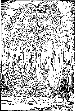 And I saw as the color of amber, as the appearance of fire round about within it, from the appearance of His loins even upward, and from the appearance of His loins even downward, I saw as it were the appearance of fire, and it had brightness round about. – "God dwelleth in light whereto no man can approach." (1 Tim. 6:16.) Radiant is the Almighty with the golden glow of the Divine nature. "Our God is a consuming fire" (Heb. 12:29); only the perfect can stand in His presence; for all dross, not refinable (Mal. 3:2, 3), is consumed by Justice. The essence of the Divine Revelation is Love, the golden light radiating in every direction from Our Father. "He that loveth his brother abideth in the light" (1 John 2:10), in the Divine love light that surrounds the Throne and pervades the entire spirit realm. This love is the light of the world, to light men unto God.